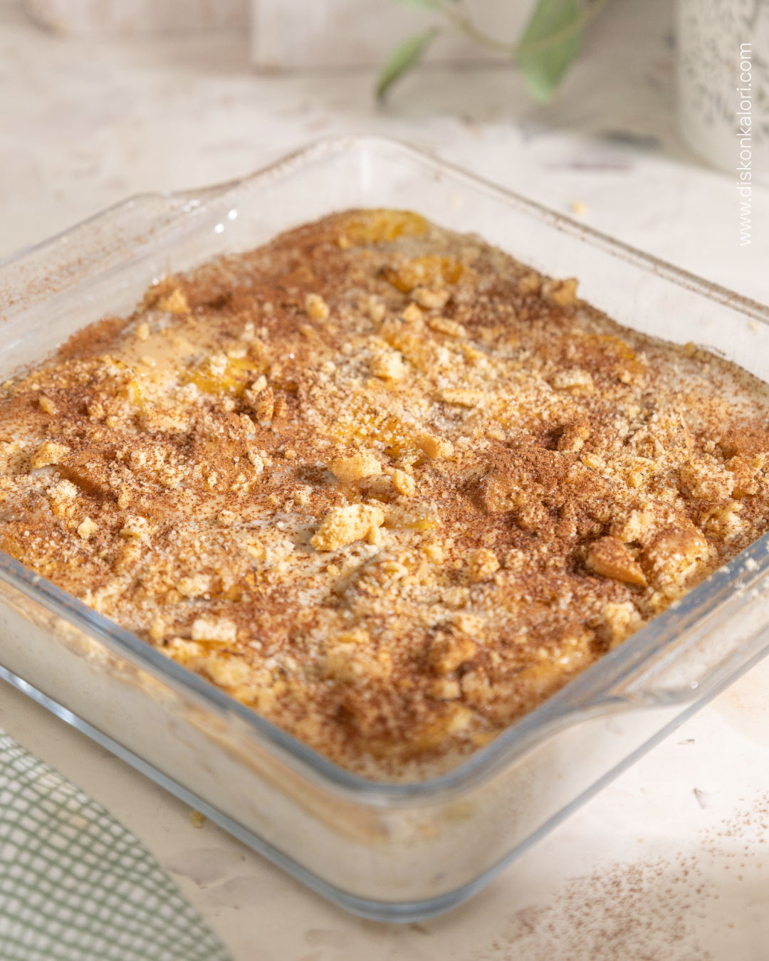 8. Tambahkan selai speculoos rendah kalori, hancurkan satu keping biskuit sugar free di atasnya, dan beri taburan cinnamon.