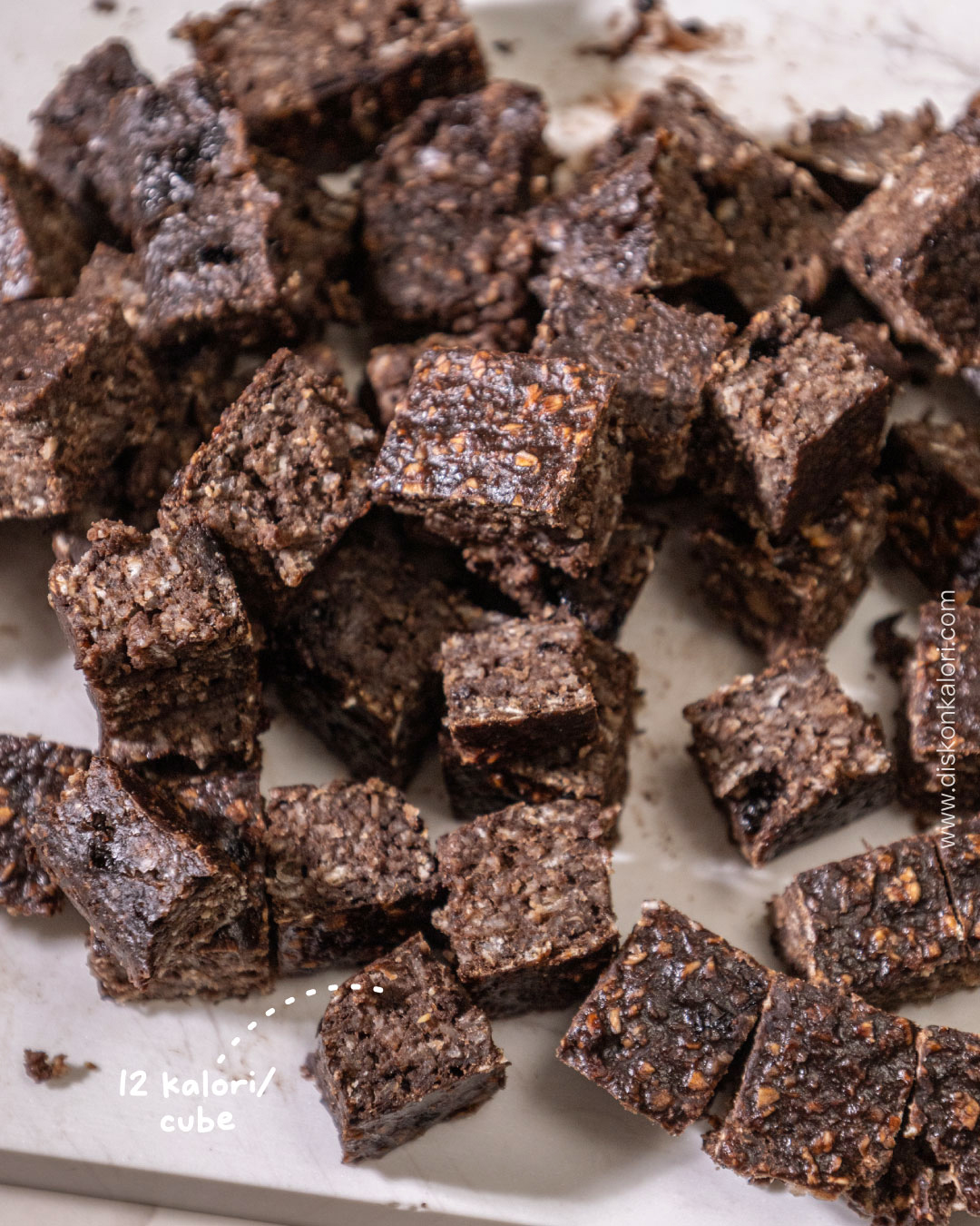 Brownies ini dibuat dari bahan-bahan tinggi serat seperti pisang dan oatmeal. Jadi meskipun potongannya kecil, efek kenyangnya lumayan terasa—ngemil sedikit saja sudah cukup. Cocok banget buat kita yang mau tetap bisa makan manis, tapi nggak berujung kalap ngemil banyak.
