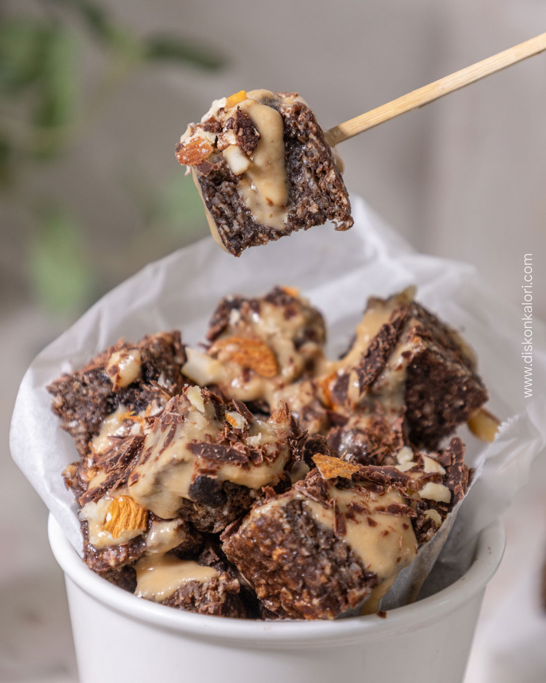 Resep Brownies Rendah Kalori dengan Selai kacang, Topping Dark Chocolate & Almond